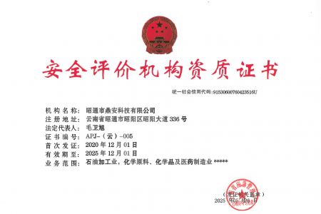2003年11月10日,昭通市鼎安科技有限公司成立,初始主要從事第三方安全工程技術(shù)服務(wù),經(jīng)多年運營,發(fā)展為多專業(yè)綜合科技平臺,為社會提供多種專業(yè)技術(shù)服務(wù)工作。 現(xiàn)公司注冊資金為1200萬元,公司法定代表人:毛衛(wèi)旭。公司主要業(yè)務(wù):安全評價、安全標(biāo)準(zhǔn)化評審、安全工程技術(shù)服務(wù);環(huán)境監(jiān)測、職業(yè)衛(wèi)生檢測、檢驗;法律訴訟及非訴訟服務(wù);司法鑒定、固定資產(chǎn)投資項目節(jié)能服務(wù);工程咨詢;工程測量測繪;安全教育培訓(xùn)等。是安全生產(chǎn)服務(wù)、安全教育培訓(xùn)機(jī)構(gòu),也是環(huán)境監(jiān)測和職業(yè)衛(wèi)生服務(wù)機(jī)構(gòu),同時也是綜合的檢測檢驗、綜合科技平臺服務(wù)機(jī)構(gòu)。多年來為公、檢、法、司、軍、警、海關(guān)、仲裁、安監(jiān)、工礦商貿(mào)企業(yè)、社會團(tuán)體及個人提供多專業(yè)技術(shù)服務(wù)。